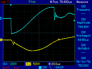 Das spätere Überschlagen passt gut zur Theorie, da die hohen Induktivitäten schnellen Änderungen entgegenwirken.
